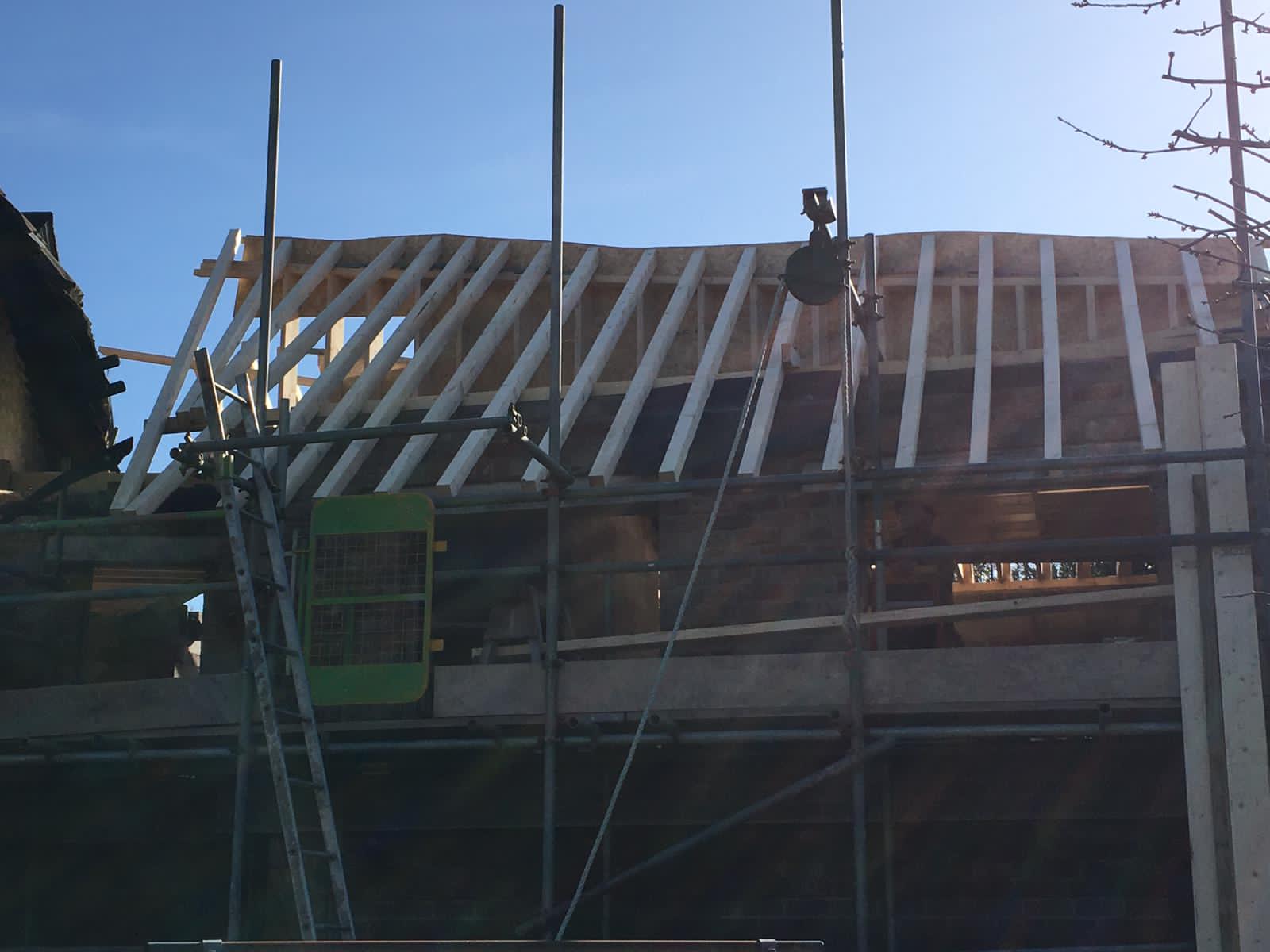 DetailsThe start of the roof structure going on a listed building in Formby which we are currently working on, this job has been a pleasure to work on trying to match up with the existing house and all the quirky shapes.